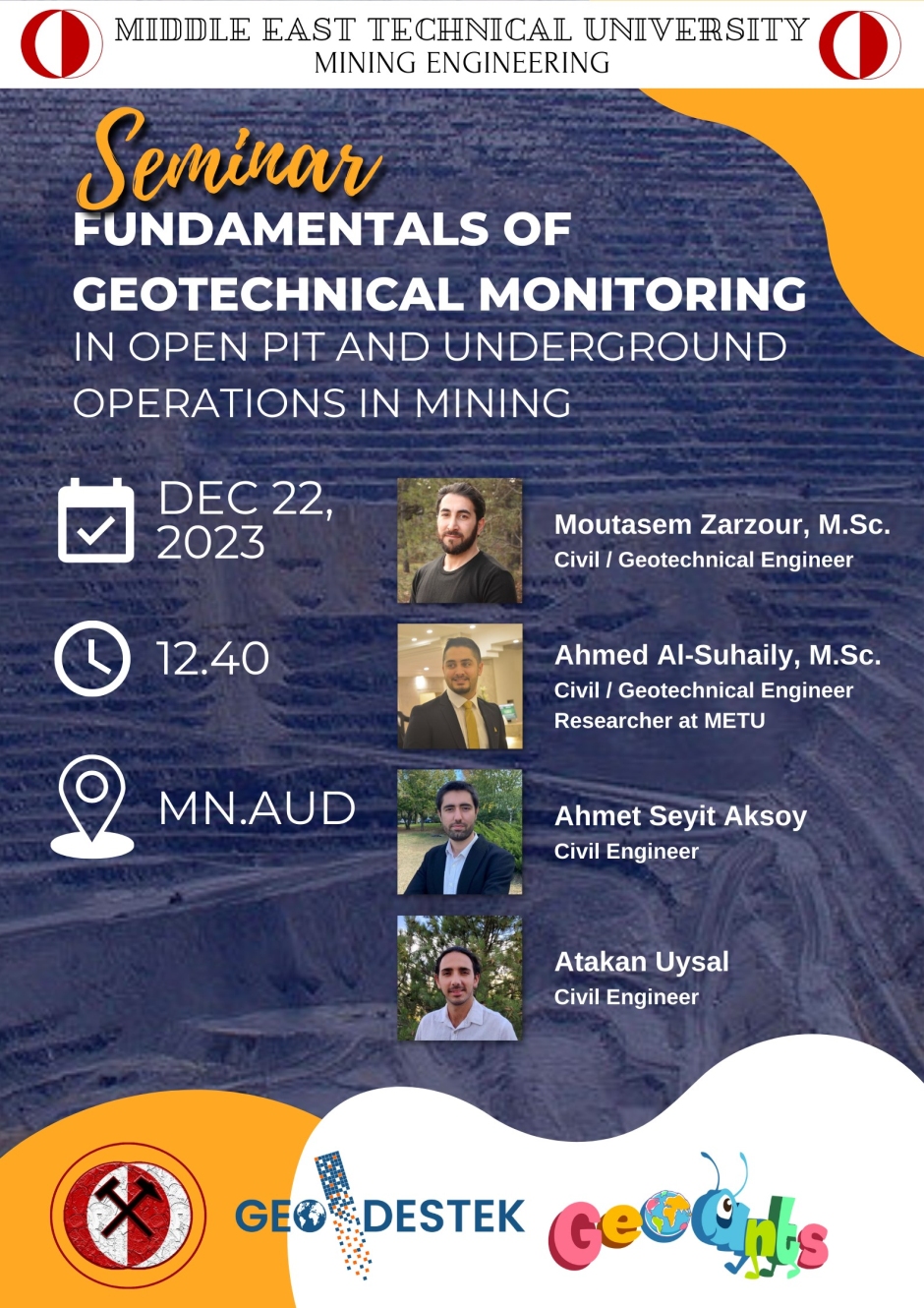 Geodestek bölümümüzde 22 Aralık 2023 saat 12:40'da, madencilikte kullanılan jeoteknik ölçüm sistemleri hakkında seminer vermiştir.